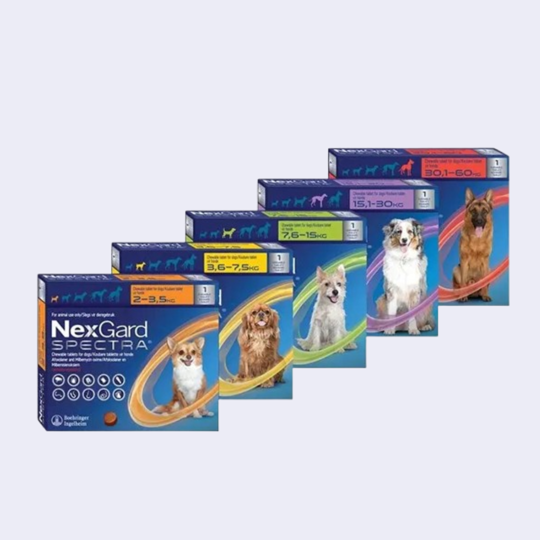 Nexgard spectra est un traitement antiparasitaire internes et externes (respectivement contre les vers intestinaux et pulmonaires et contre les puces et les tiques principalement) qui sont nécessaires pour vote chien ou chiot.